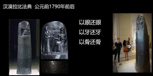 公元前1790左右中东出现了著名的《汉谟拉比法典》,比子产颁布成文法早一千二百多年,里面有“以眼还眼,以牙还牙,以骨还骨”的名言。《汉谟拉比法典》有282条法律条款,而且多数与商业贸易、财产权、婚姻等民法有关。很显然,当时的中东社会对商业贸易的依赖,远高于春秋时的中国。