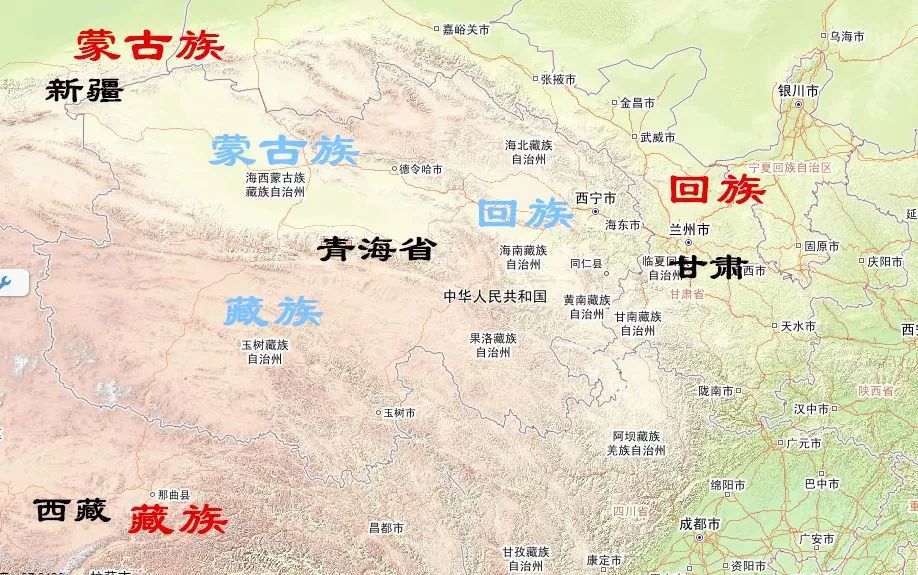 因此,至清朝中后期,青海地区形成了南部藏人、北部蒙古人、东部回族、汉人的三分局面。